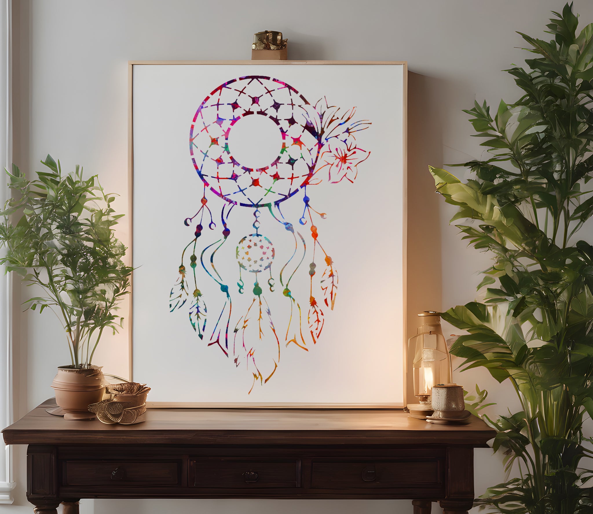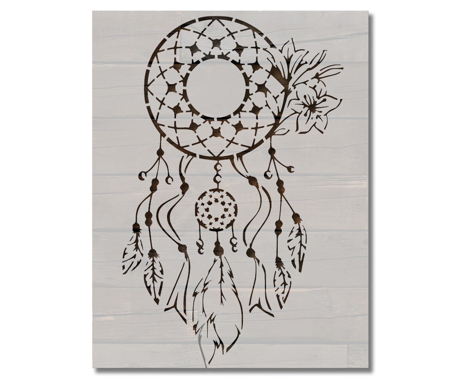 Create peaceful, boho-inspired art with our Dream Catcher Stencil. Featuring a beautifully detailed hoop with feathers and bead accents, this stencil is perfect for nursery décor, bedroom wall art, journals, fabrics, spiritual décor, and handmade gifts.