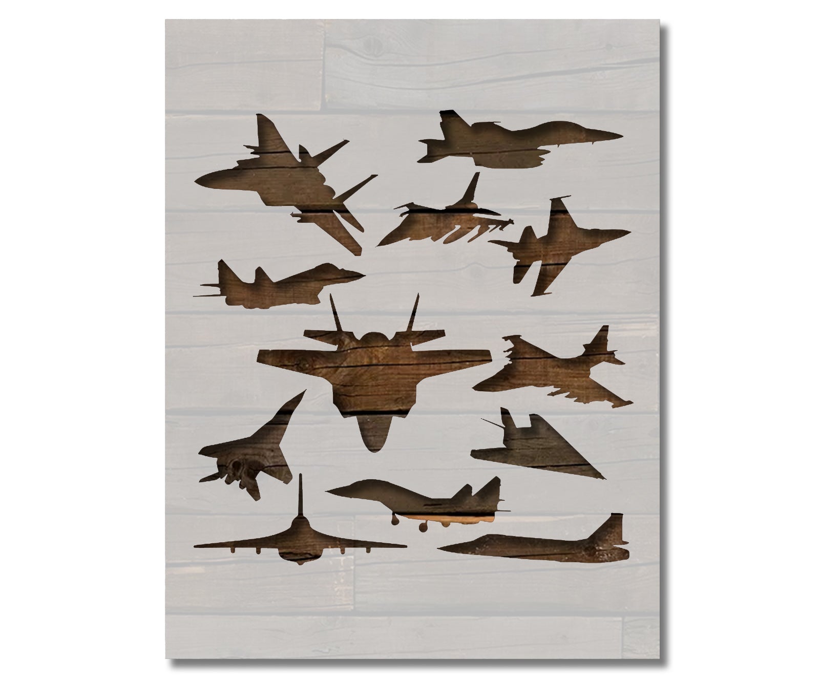 Perfect for aviation enthusiasts, military fans, crafters, and educators, this stencil comes in multiple sizes for a variety of projects. Use it to create stunning wall art, personalized gifts, or educational displays that capture the excitement and power of military aviation.