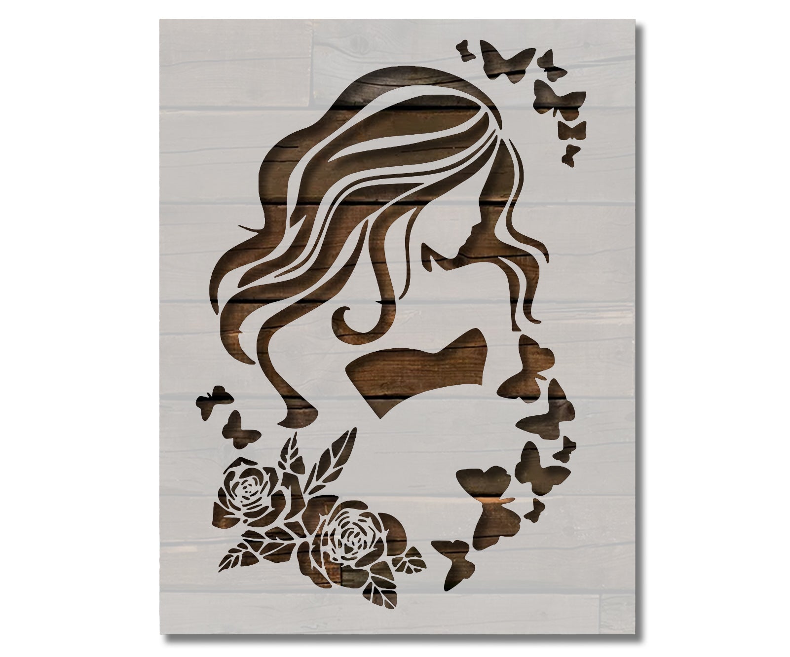 Girl Long Hair Eyes Roses Butterfly Model Stencil