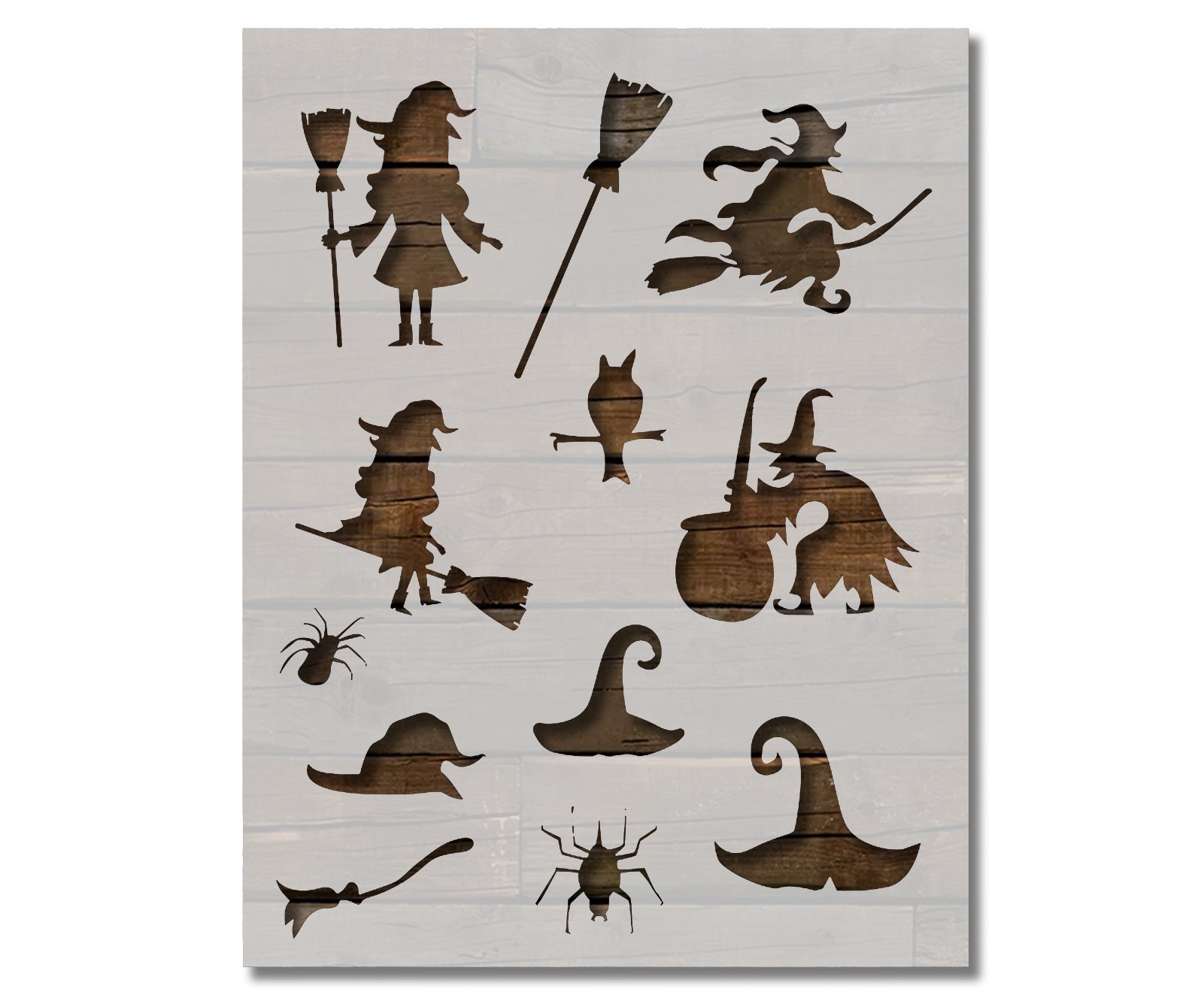 Add spooky-cute witch elements to your Halloween projects with this versatile stencil.