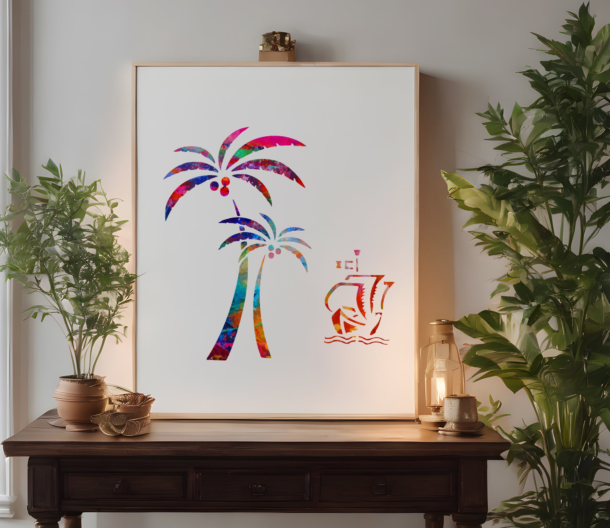 Bring tranquil coastal vibes to your projects with the Palm Trees Sailboat Scene Scenery Stencil. Made from high-quality, semi-transparent 7 mil mylar, this stencil is durable, reusable, and easy to clean, perfect for walls, paper, fabric, or wood. Its scenic design captures the beauty of palm trees and sailboats in crisp detail.