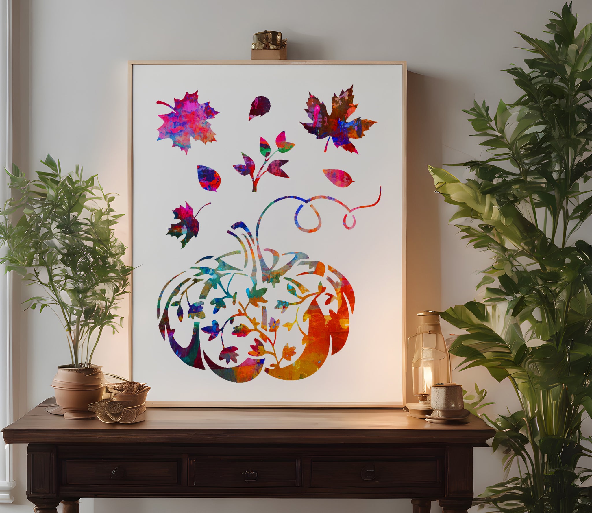 Available in multiple sizes, this stencil works for small-scale projects like greeting cards or notebooks, as well as larger applications such as murals, wall panels, and furniture décor. Compatible with paint, ink, chalk, and texture mediums, it is perfect for versatile crafting during the fall season.