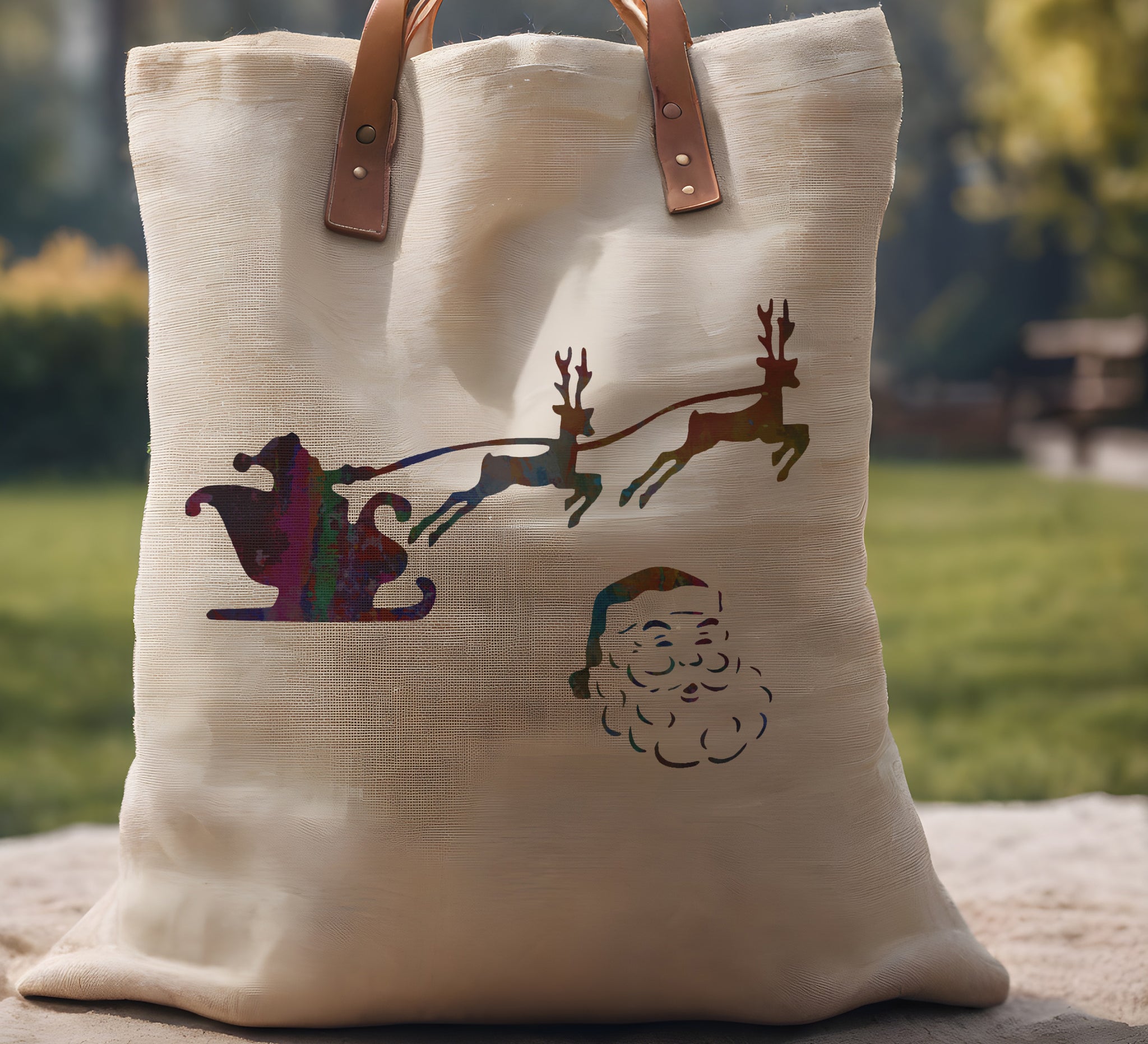 Santa Claus Sleigh Reindeer Christmas Stencil