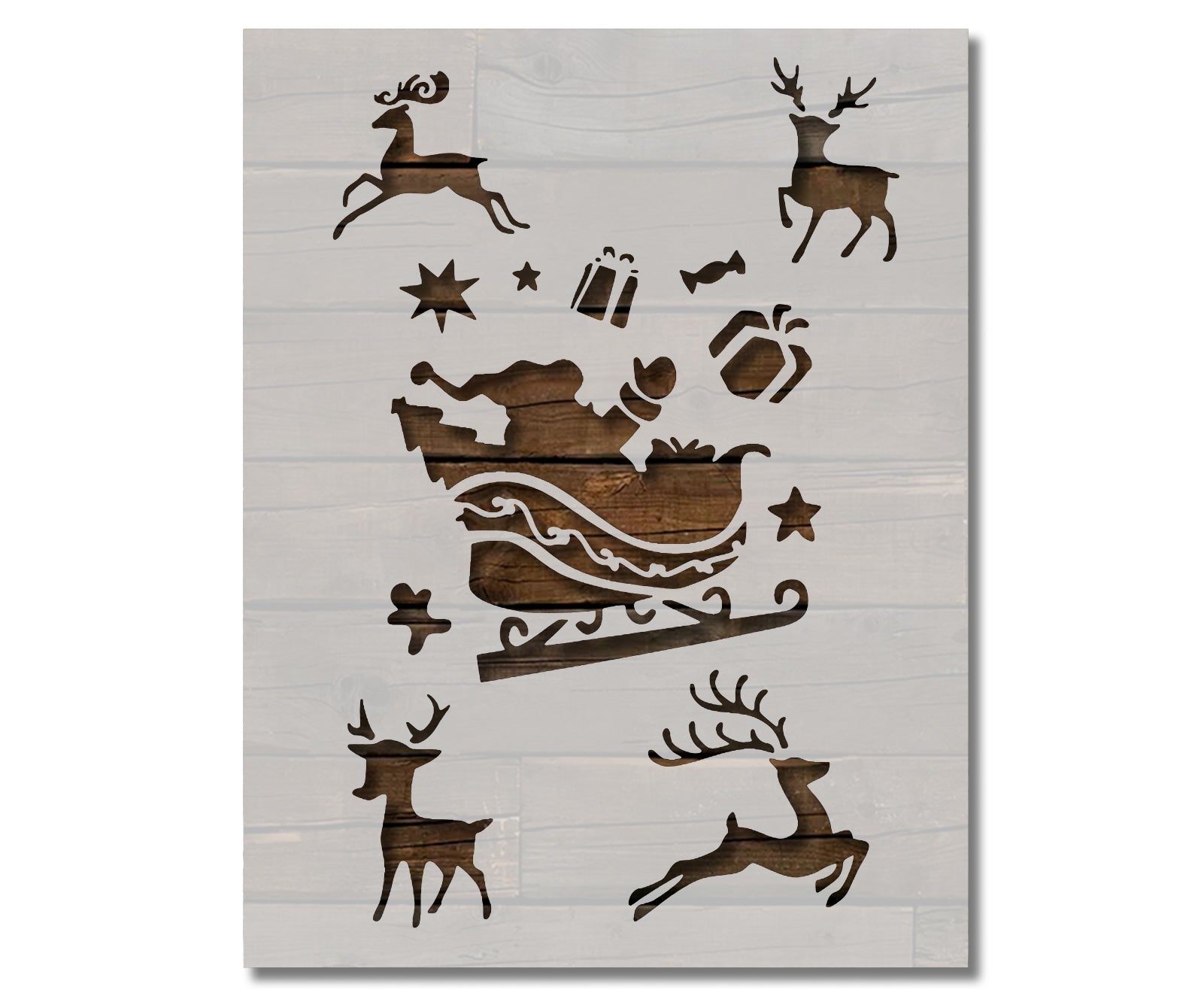 Santa Sleigh Reindeer Gifts Christmas Stencil