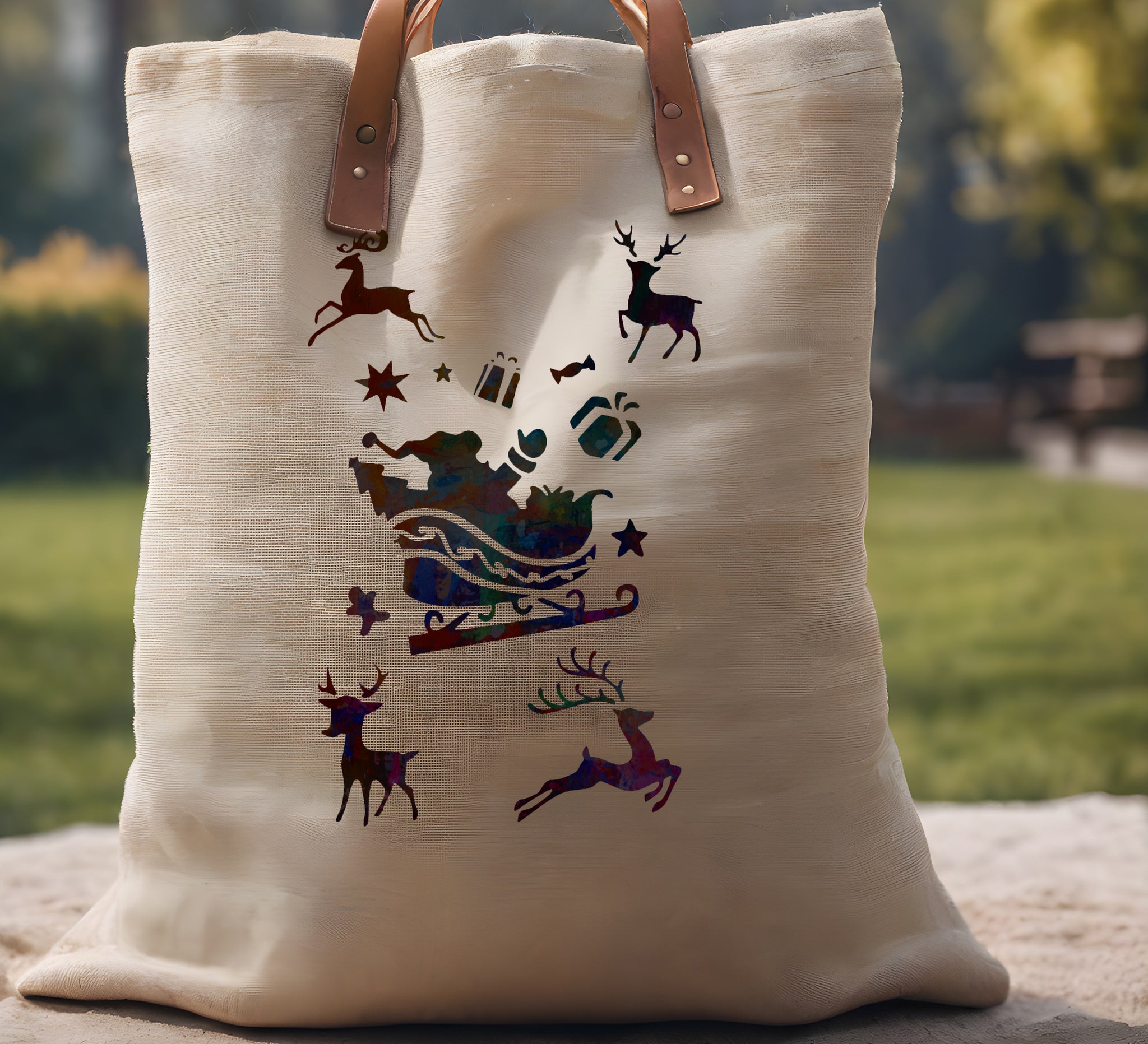 Celebrate the festive season with the Santa Sleigh Reindeer Gifts Christmas Stencil. This detailed stencil features Santa riding his sleigh with reindeer and presents, perfect for creating holiday-themed wall décor, cards, canvas art, gift packaging, and seasonal crafts. Its whimsical design captures the joyful spirit of Christmas.