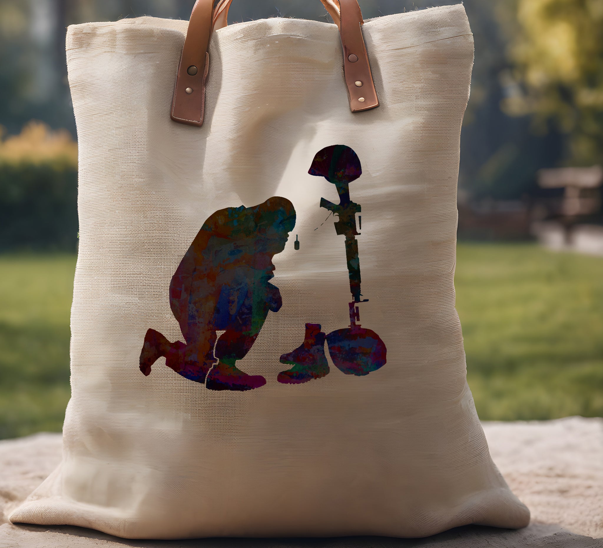 Soldier Kneel Pray Rifle Helmet Stencil (585)