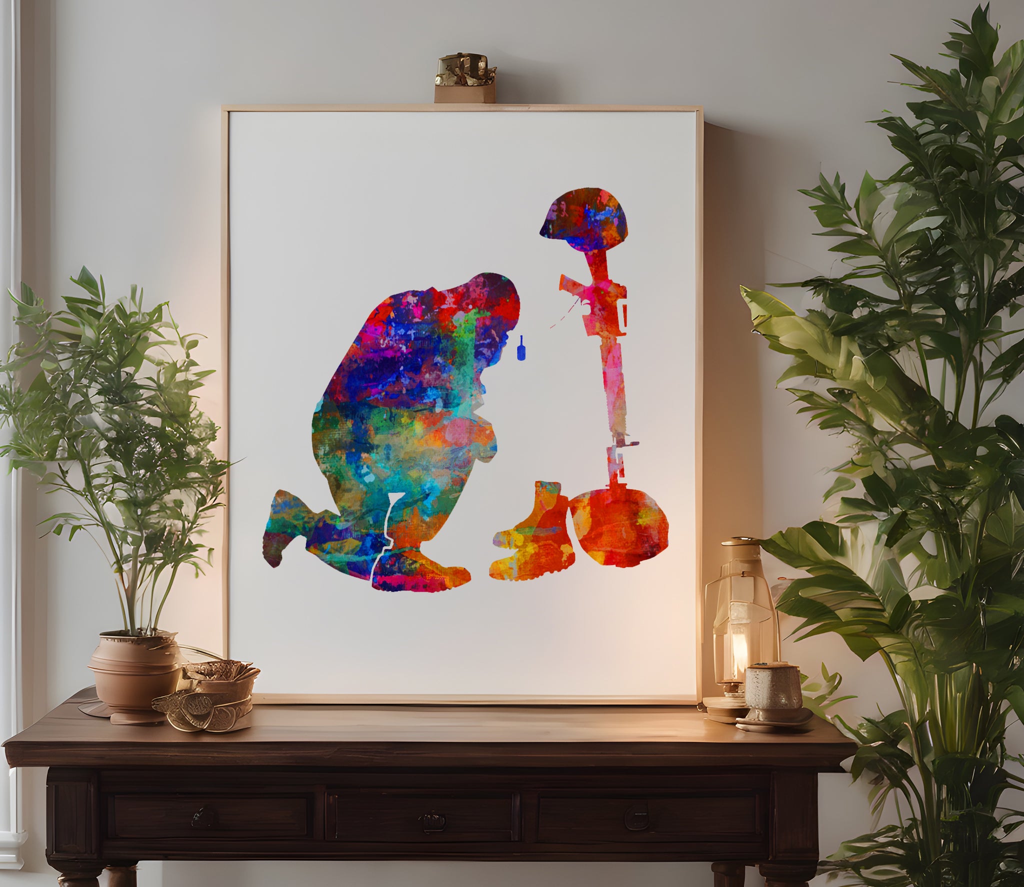 This Soldier Kneeling Stencil captures a reflective moment of honor and remembrance. It is a meaningful design for tribute artwork, memorial displays, patriotic décor, apparel printing, fundraising events, and commemorative crafts.