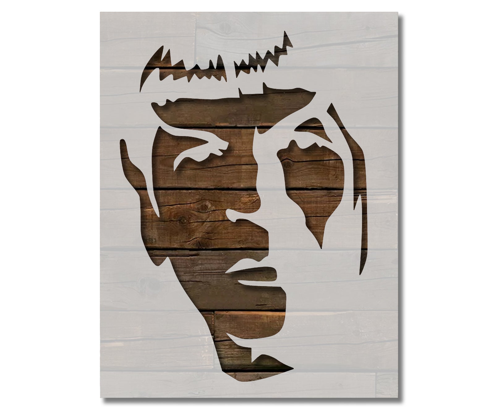 This character face stencil is inspired by classic science-fiction style portrait art and is perfect for fans of retro television themes, pop-culture décor, theater props, and creative gift projects. The crisp facial outline makes it easy to achieve a bold graphic look on posters, canvas, apparel, craft boards, and more.