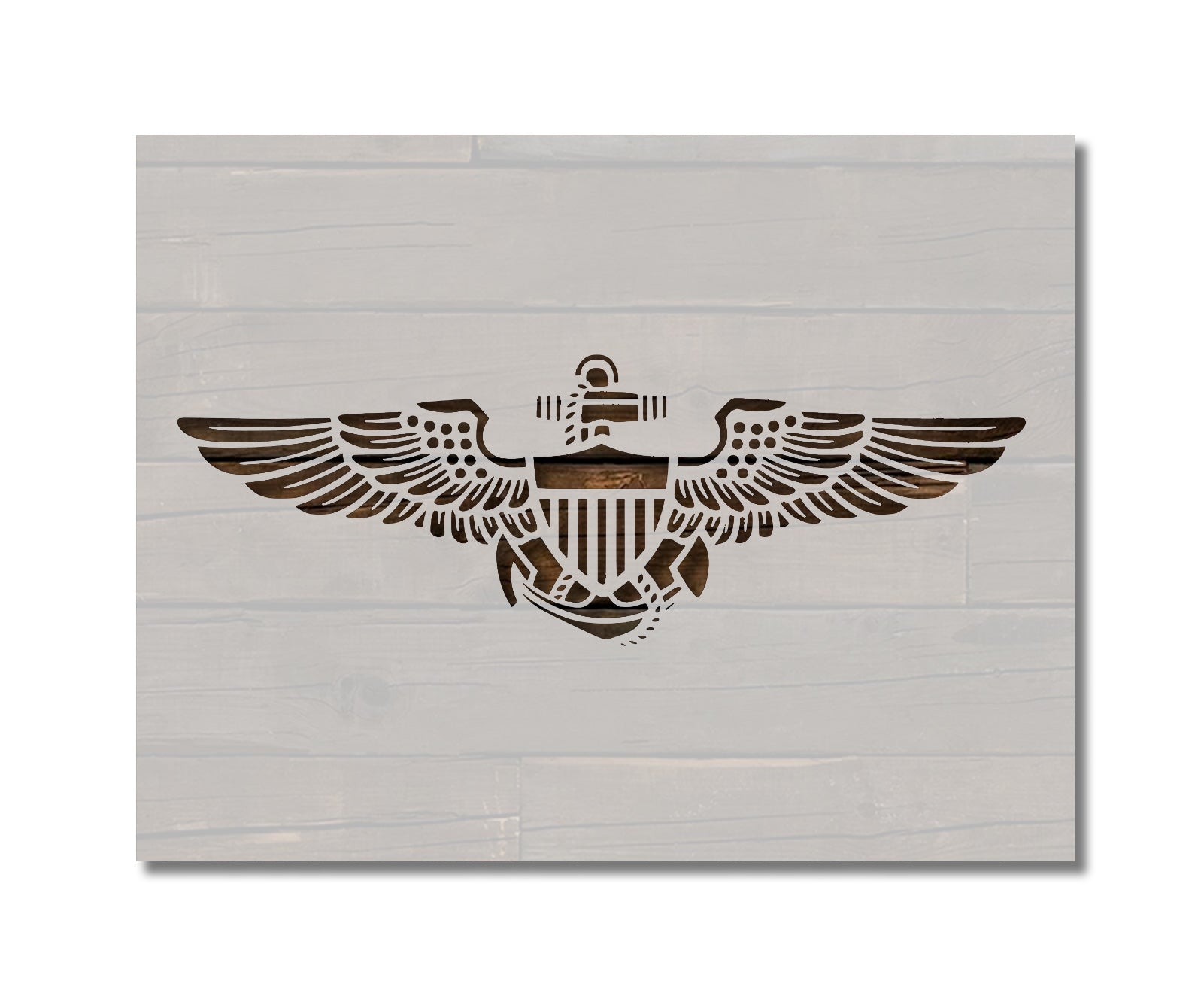 Honor Naval Aviators with this detailed Aviator Wings stencil — perfect for plaques, wood flags, shadow boxes, home décor, and commemorative artwork.